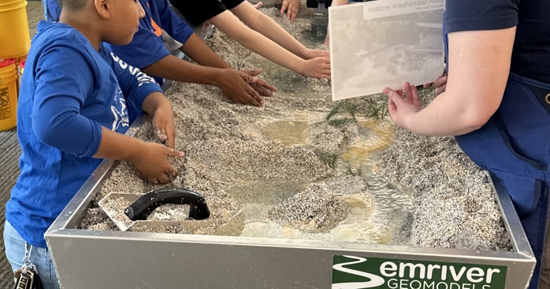Emriver stream tables are dynamic and engaging hands-on laboratories that put science, technology, engineering, and math into action. An interdisciplinary approach to teaching how rivers work creates good stewards of natural resources and prepares students for careers in STEM fields. At least a dozen students can view and work with the Em2 stream table at the same time, and the larger Em3 and Em4 simulated river systems can be viewed by larger groups. Emriver stream tables engage students in lessons, experiments, and discussions about topics such as: