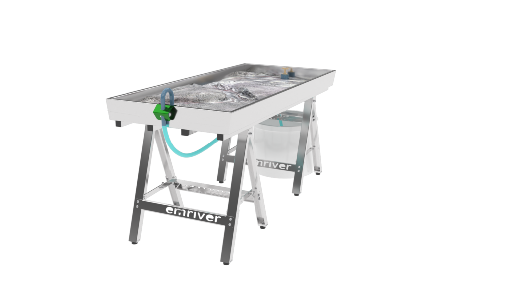 The Emriver Em2 Stream Table is perfect for demonstrating river science and conservation principles to audiences of all ages and educational backgrounds. This model is optimized for ease of setup, use and portability.