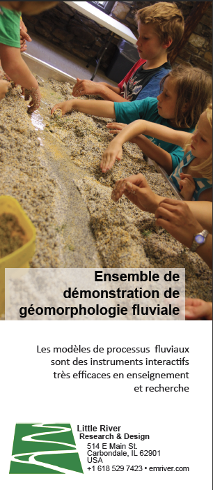 Notre clientèle continue de grandir non seulement aux Etats Unis mais aussi à travers le monde.  Des universités et laboratoires de recherche allemands, britanniques, canadiens et néerlandais  utilisent déjà nos géo-modèles Emriver pour la recherche et l’enseignement des processus fluviaux. Dans le but d’accommoder nos  clients internationaux, nous avons pris l’initiative de traduire nos brochures en plusieurs langues. Notre brochure en Français est déjà prête et nos brochures en Espagnol et Chinois seront imprimées très bientôt. Contactez-nous pour une brochure en Français ou en Anglais ou téléchargez directement des copies PDF de notre site web.
