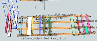 Here you can see me with a wooden mock-up. This thing is complicated because the box is sloped ~3.5 degrees, and the legs splay ~10 degrees in two directions, but not the same on each end because of the box slope.