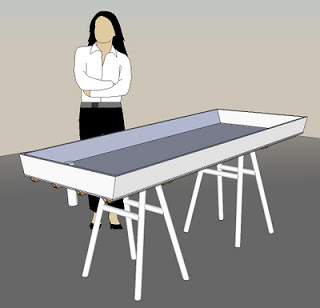 I won’t go into the details*, but I’ve decided to go back to a “sawhorse” configuration for the legs. It’s cheaper, very strong, and easy to build.
