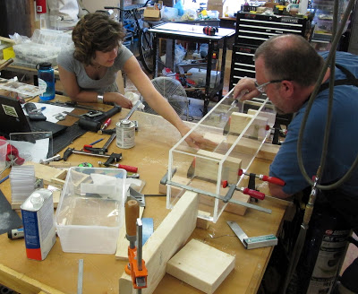 Steve and Christina work on the Emflume1’s acrylic reservoir.
