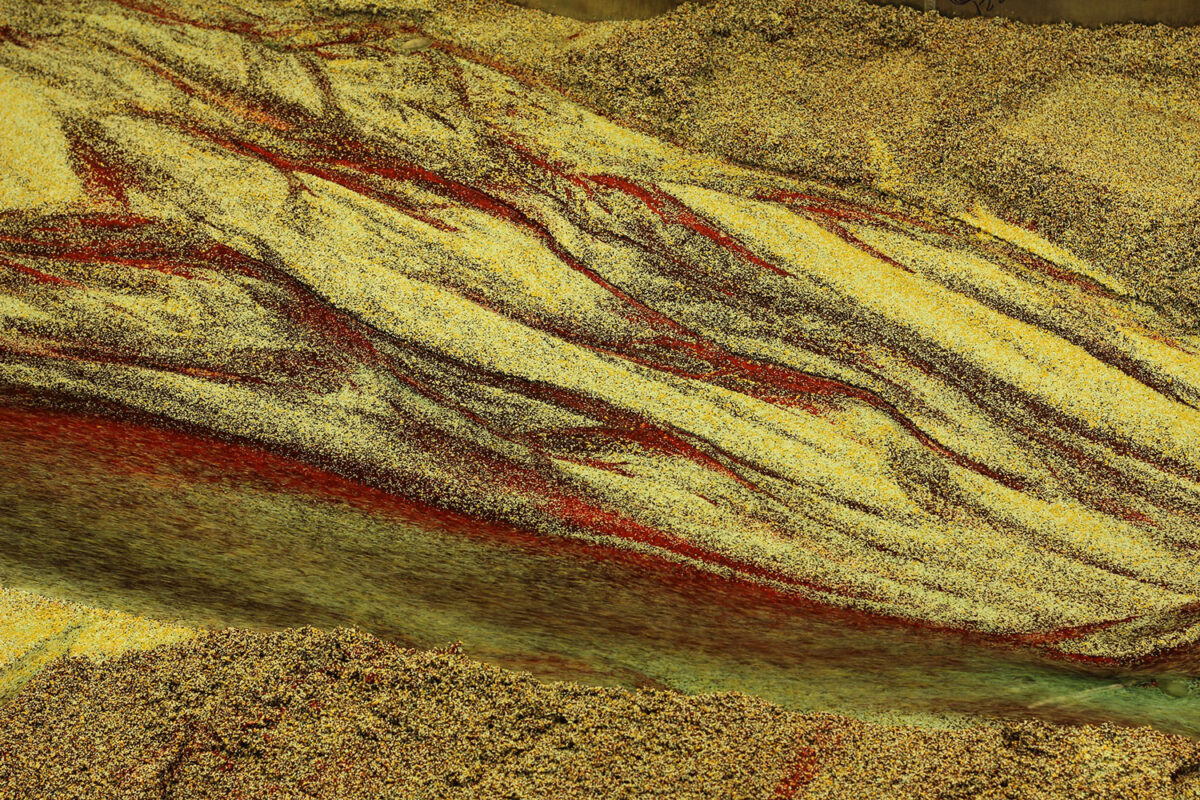 This finer media is more cohesive, and for that, and other reasons, displays very different behavior from our courser color coded media.