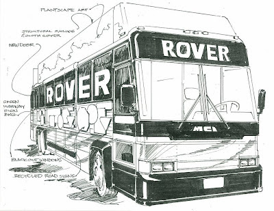 The “ROVER” in Eco ROVER stands for Repurposed Outreach Vehicle for Education and Research. In other words, it’s an old charter bus that Andrew bought and is turning into a mobile, interactive science classroom. When all is said and done, it’ll have Emriver models, a vegetated roof, a beehive, and other interactive exhibits, and it will visit schools and student groups around Southern Illinois and Indiana. Check out some conceptual sketches here.